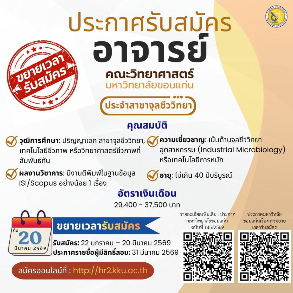 อ้างอิงประกาศมหาวิทยาลัยขอนแก่น ฉบับที่ 323 / 2569 ลงวันที่ 12 กุมภาพันธ์ พ.ศ. 2569