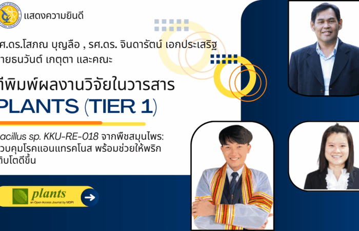 รศ.ดร.โสภณ บุญลือ และคณะ ได้รับการตีพิมพ์ผลงานวิจัยในวารสาร Plants รายงานศักยภาพของเชื้อแบคทีเรียเอนโดไฟต์ Bacillus sp. KKU-RE-018
