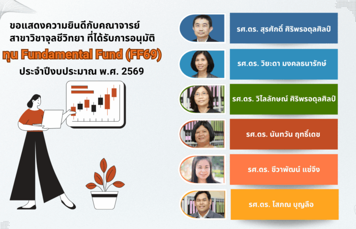ขอแสดงความยินดีกับคณาจารย์สาขาวิชาจุลชีววิทยา ที่ได้รับการอนุมัติทุน Fundamental Fund (FF69) ประจำปีงบประมาณ พ.ศ. 2569